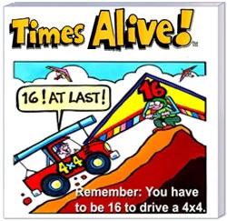 The story tells about Bart who gets a job at Burger King so he can save enough money to buy a 4by4. After he gets the money he buys a truck and loves hang gliding because he no longer has to hike the glider up the hill to fly off. He just drives to the top. But the catch is that he has to wait till he is 16 so he can get his drivers license. Once kids picture this story in their head they remember that you have to be 16 to drive a 4x4. So 4x4=16.